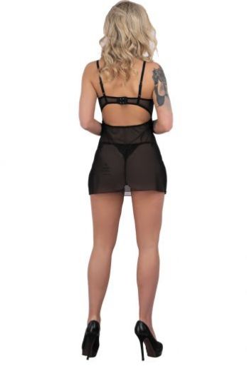 Сорочка Binella должна быть у каждой женщины, которая любит выглядеть элегантно и сексуально. Полупрозрачный черный материал слегка обнажает тело, что, в свою очередь, повышает сексуальную привлекательность. Верхняя часть очень богатая – бюстгальтер, идеально подчеркивающий грудь, украшен кружевными вставками, а посередине черный бантик. На бретели бюстгальтера добавлен еще один акцент – кружевной материал, имитирующий украшения (например, колье), что, несомненно, добавляет еще большей привлекательности. В комплекте идут стринги.