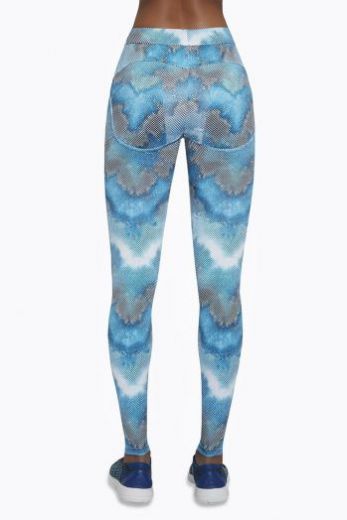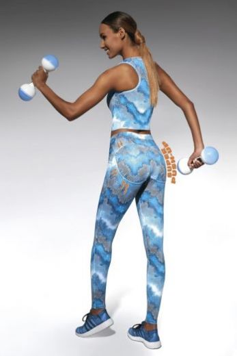 Легинсы для фитнеса голубого цвета Energy 200 с эффектом push-up изготовлены из полностью непрозрачного, эластичного, корректирующего фигуру материала. Благодаря применению особой химической модификации структуры волокон фирмы ARCHROMA, материал имеет улучшенные свойства пропускания воздуха и отвода влаги с тела.