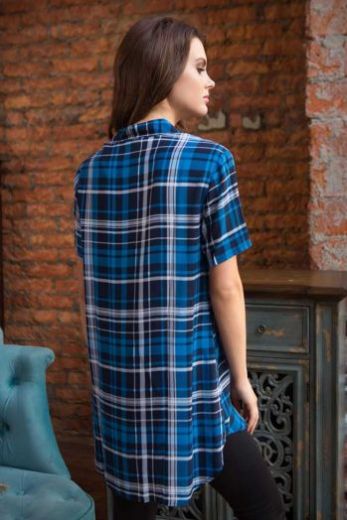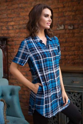 Туника Mia-Mia домашняя женская средней длины полуприлегающего силуэта из принтованной вискозы, с отложным воротником. Воротник рубашечного типа. В боковых швах имеются карманы. Туника застегивается на пуговицы.