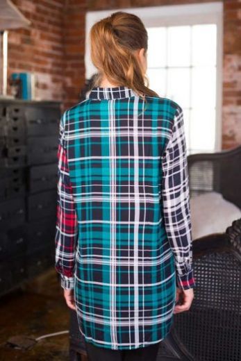 Туника Mia-Mia домашняя женская средней длины полуприлегающего силуэта из принтованной вискозы, с отложным воротником. Воротник рубашечного типа. Туника застегивается на пуговицы. На груди накладной карман с фирменной вышитой монограммой по ткани ручной работы.