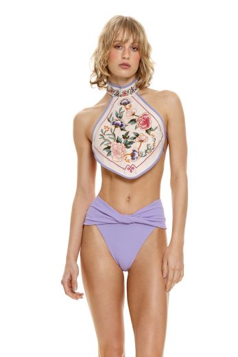 Кроп-топ Elay с контрастным горлом и цветочным принтом. Присутствуют элементы ручной работы: плетение и вышивка.