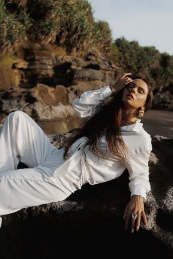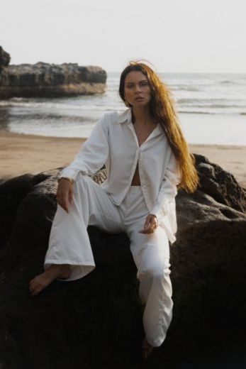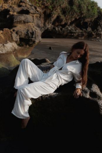 Комфортный и элегантный комплект, состоящий из брюк и рубашки, выполнен из армани шелка. Широкие струящиеся брюки в пол подчеркнут бедра и сделают ножки бесконечно длинными, а рубашка с красивыми манжетами и интересной потайной планкой для пуговиц, станет дополнением к ним. Универсальный комплект можно одевать в паре или носить по отдельности. Он станет прекрасным образом как для дома, так и для прогулок и свиданий.