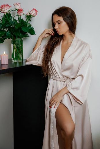 Такой простой, но при этом невероятно элегантный халат-кимоно из армани шелка точно станет любимым образом. Струящийся по телу, обволакивающий и создающий эффект второй кожи, приносящий чувство комфорта и уюта, но при этом оставаясь невероятно сексуальным. Халат-кимоно станет идеальным образом для домашнего использования, а также, накинув его поверх платья, шикарной накидкой для выхода в свет.