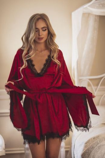 Игривый, струящийся и изящный халат из вишневого армани шелка. Халат с элегантными рукавами и кружевом, притягательного вишневого цвета, в котором ты точно не останешься не замеченной. А поясом от халата ты можешь связать руки любимому или завязать глаза. Дополни образ вишневой сорочкой с маской на глаза!