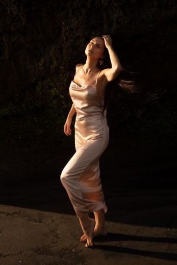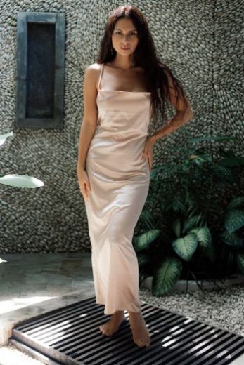 Потрясающее платье-комбинация длины миди из армани шёлка, облегающее фигуру и подчеркивающее всю красоту, с эффектным хомутом и шнуровкой, привлекающими всё внимание к изящной спинке. Платье-комбинация придаст образу сексуальности и обворожительности. Оно станет идеальным образом как для дома, так и для выхода на прогулку или свидание, добавив туфли на шпильке.