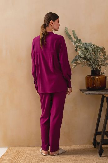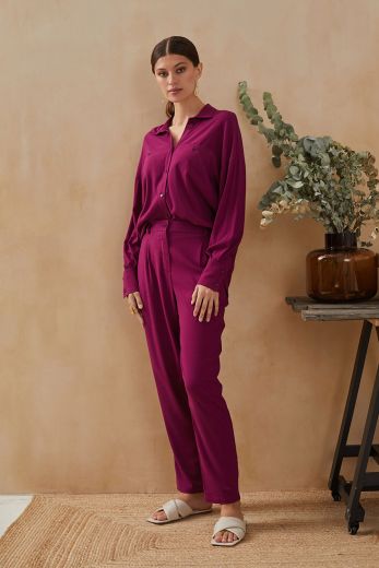 Легкие домашние брюки бордового цвета из натуральной ткани. Модель свободного кроя для комфортного и удобного использования. С кармашками у пояса по обоим краям для удобства. Ткань легкая, приятная и изящно садится по фигуре. Не стесняет движений и отлично подходит для полноценного отдыха в домашней атмосфере. Приятная глазу расцветка брюк, удобный, подчеркивающий привлекательность вашей фигуры фасон и качественный материал наделяют данную модель брюк множеством плюсов, украшая свою обладательницу.