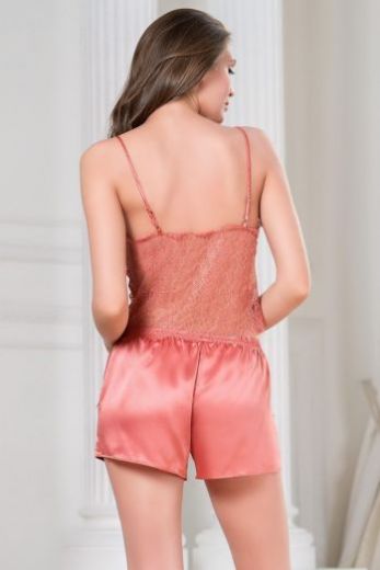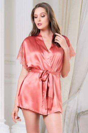Комплект с шортами, топом и коротким халатом Mia-Amore выполнен из смесового однотонного шелка. Топ полностью выполнен из кружева. Рукава халатика выполнены из тонкого кружева, на шортах кружевные вставки. По центру лифа топа изящный бантик с подвеской. Халат дополняет эффектный широкий пояс.