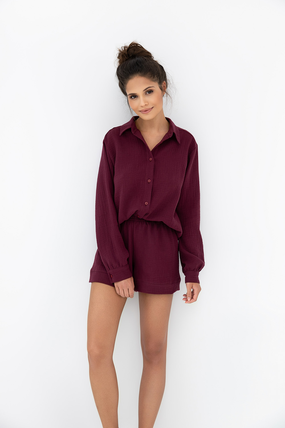Пижама женская SENSIS Ivory, рубашка, шорты, бордовый