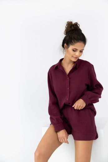 Комплект домашней одежды женский SENSIS Ivory, рубашка, шорты, бордовый