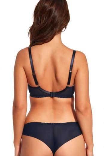 Темно-синие трусы из линейки Subtle Temptation. Красивые и элегантные бразилиана – это идеальный выбор для тех, кто хочет подчеркнуть свою линию бедер с изящностью. Они обладают идеальной посадкой и незаметны под одеждой. Благодаря двойной сетчатой спинке без швов, они обеспечивают максимальный комфорт и легкость ношения. Но настоящая изюминка – роскошная вышивка спереди, обработанная по технологии плоских швов, которая придает им дополнительную элегантность и делает их привлекательными для любого образа.