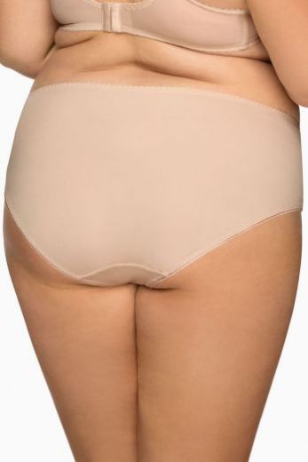 Бежевые трусы из линейки Subtle Temptation. Классические, высокие трусики из нежной микрофибры, украшенные уникальной вышивкой. Очень удобные, они хорошо закрывают ягодицы, а гладкая спинка делает трусики практически незаметными под одеждой. Ножки отделаны тесьмой, которая сшита по технологии плоского шва, обеспечивая максимальный комфорт при ношении.