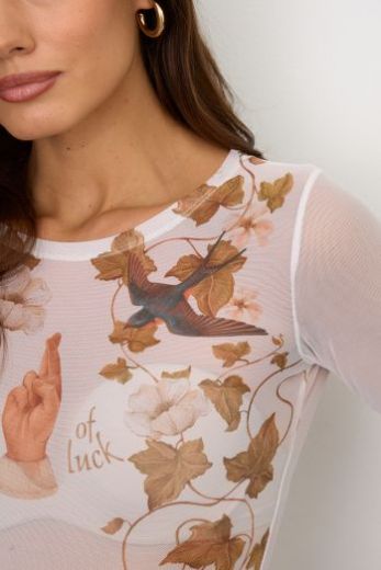 Один из самых удобных и универсальных предметов женской одежды - боди. Дерзко, но в то же время женственно и невинно смотрятся тату - принты на полупрозрачных тканях, каждая из которых отражает настроение, несет тайный смысл и женскую силу. Боди с подобным декором отлично впишутся как в сдержанные casual - look, так и в эффектные вечерние ансамбли. Носят его поверх телесного, черного или коричневого бесшовного бюстгальтера. Но особо смелые - на свое прекрасное тело без лишних деталей. Наша модель органично сочетается как с однотонными минималистичными вещами, так и с более яркой, сложной, интересной одеждой. Используйте боди как базу под брючные костюмы, кардиганы, рубашки, сарафаны и платья без рукавов.