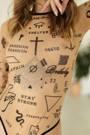 Удобная и универсальная блузка-боди со стрингами. Дерзко, но в то же время женственно и невинно смотрятся тату - принты на полупрозрачных тканях, каждая из которых отражает настроение, несет тайный смысл и женскую силу. Боди с подобным декором отлично впишутся как в сдержанные casual-look, так и в эффектные вечерние ансамбли. Носят его поверх телесного, черного или коричневого бесшовного бюстгальтера. Наша модель органично сочетается как с однотонными минималистичными вещами, так и с более яркой, сложной, интересной одеждой. Используй боди как базу под брючные костюмы, кардиганы, рубашки, сарафаны и платья без рукавов.
