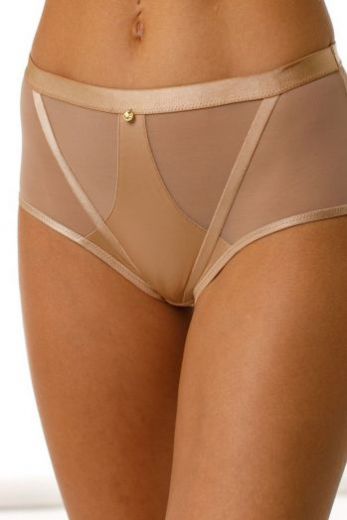Трусы слип со средней линии талии. Выполнены из эластичного полотна и эластичной сетки. Украшение: медальон с логотипом COQUETTE REVUE.