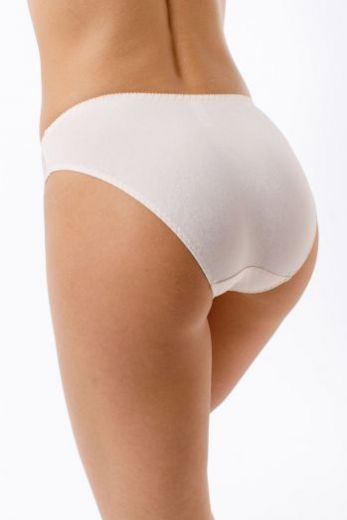 Трусы-слип с высокой линией талии. Выполнены из эластичного принтованного полотна и кружева. На задней детали вставка из кружева. Использована плоскошовная обработка.