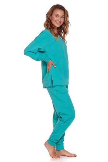 Стильный костюм DRS.4375 Fiord состоит из свитшота свободного кроя и прямых брюк с карманами. Свитшот с V-образным вырезом горловины. Брюки на мягкой широкой резинке. Отличный вариант для домашнего отдыха.