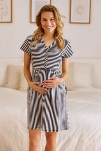Хлопковая сорочка в полоску с высокой талией. Подходит для сна и домашнего отдыха круглый год.