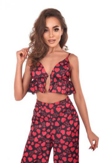 Романтичный комплект Morgan из брюк с разрезами по бокам и бюстгальтера с элегантными оборками из шелкового атласа. Изделие упаковано в красивую плотную картонную коробку и отлично подойдет в качестве подарка.