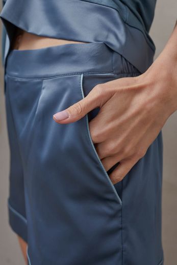 Короткие однотонные шорты. Модель имеет два боковых кармана и манжеты. Шорты идеально подходят для комфортного отдыха дома.