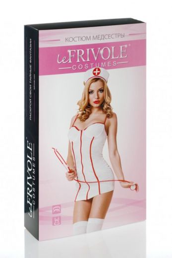 Костюм медсестры выполнен из полиэстера и эластана. В комплект входит платье и повязка на голову. Перед платья оформлен застежкой-молнией. Бюст дополнен косточками. У изделия тонкие эластичные лямки. Чулки и стетоскоп в комплект НЕ входят. Костюм упакован в красивую подарочную коробку.