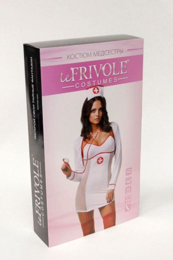 Костюм медсестры выполнен из полиэстера с элементами из эластана. В комплект входит мини-платье, оформленное боковыми вставками из сетчатого текстиля и декоративной нашивкой. Мини-платье оснащено съемными бретельками и съемными пажами, длина которых регулируется с помощью пряжек. Также в комплект входит болеро с длинными рукавами и ободок. Костюм упакован в красивую подарочную коробку.