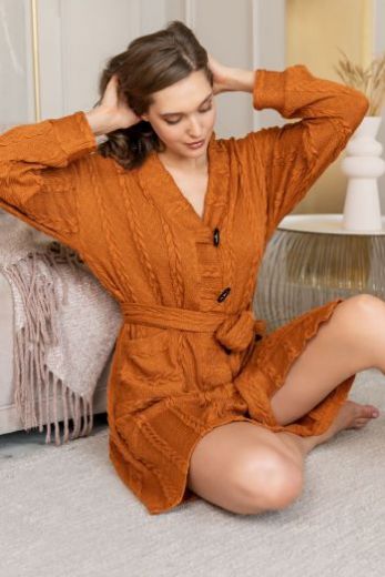 Удлиненный кардиган свободного силуэта Mia-Amore с застежкой на пуговицах, с длинными рукавами, низ которых обработан манжетами. На полочках расположены накладные карманы. Линию талии можно подчеркнуть за счет пояса, который идет в комплекте. Изделие выполнено из трикотажного полотна с фактурной вязкой.