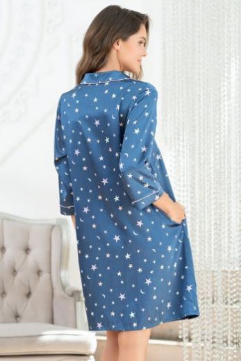 Рубашка Mia-Mella с центральной застежкой на пуговицы на пуговицах с рукавами длиной 3/4, выполнена из принтованного искусственного шелкового полотна с атласным блеском. Низ рукавов, борт и воротник декорированы контрастным кантом.