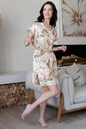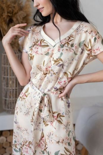 Туника Mia-Amore свободного силуэта длиной чуть выше колен с коротким рукавом. Изделие выполнено из принтованного смесового шелка с однотонной отделкой. Ширину туники можно регулировать за счет пояса, который идет в комплекте. В боковых швах обработаны карманы.
