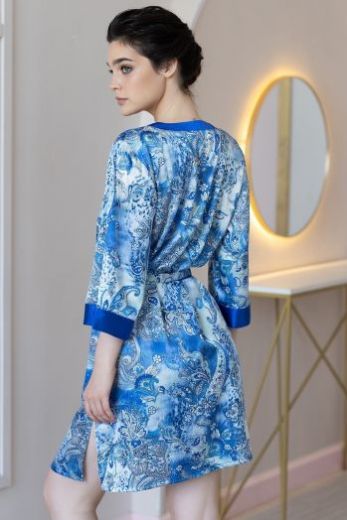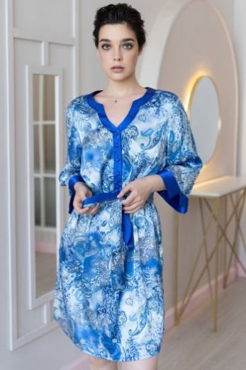 Туника Mia-Amore свободного покроя с рукавом длиной ?, выполнена из принтованной смесовой ткани. Планка и низ рукавов декорированы однотонным атласом. В боковых швах расположены карманы, а понизу разрезы.