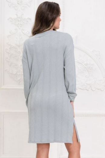 Туника с длинным рукавом до колен Mia-Amore выполнена из трикотажного полотна c фигурной вязкой. V-образный вырез изделия оформлен декоративной планкой. Низ рукава обработан манжетами. По низу изделия расположены разрезы для большей свободы движения.