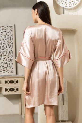 Короткая туника Mia-Amore свободно силуэта с широким рукавом, которая выполнена из искусственного шелка с монопринтом, расположенным на полочке и контрастным кантом в виде отделки. В боковых швах расположены карманы, по низу туники обработаны разрезы. Линию талии можно подчеркнуть за счет пояса, который идет в комплекте.