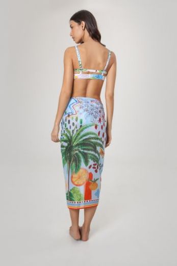 Элегантное парео с дизайнерским принтом. Составляет роскошные купальные ансамбли с любым изделием из линии. Также парео можно использовать как платок, тюрбан или шарф.