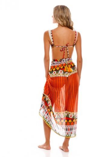 Элегантное парео с уникальным дизайнерским принтом. Составляет роскошные купальные ансамбли с любым изделием из линии. Также парео можно использовать как платок, тюрбан или шарф.