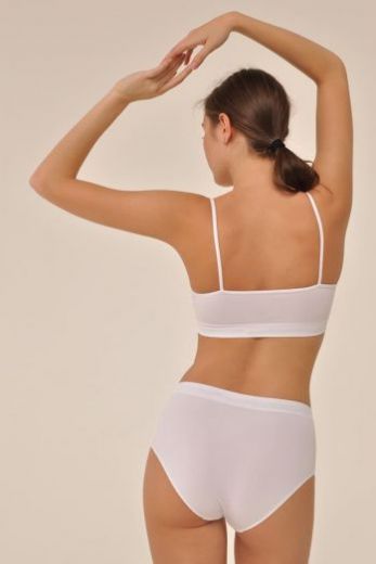 Базовый топ на тонких бретелях. Модель выполнена по бесшовной технологии из мягкой эластичной микрофибры, без чашки и уплотнения. Широкая резинка по нижнему краю обеспечивает мягкую комфортную поддержку груди. Анатомическая вязка повторяет форму груди и обеспечивает мягкую комфортную поддержку. Тонкие эластичные бретели не регулируются по длине. Не оставляет следов на коже, не вызывает раздражений и не накапливает внешние аллергены. Не мнется и не требует глажения.