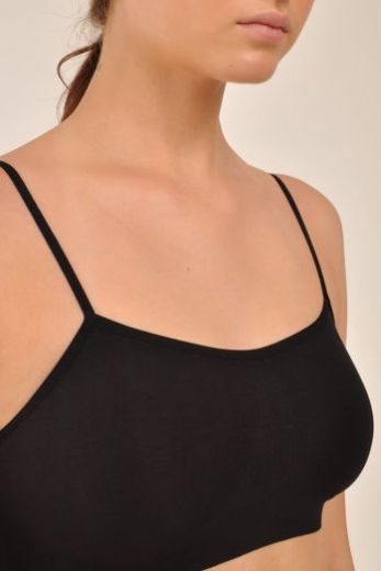 Базовый топ на тонких бретелях. Модель выполнена по бесшовной технологии из мягкой эластичной микрофибры, без чашки и уплотнения. Широкая резинка по нижнему краю обеспечивает мягкую комфортную поддержку груди. Анатомическая вязка повторяет форму груди и обеспечивает мягкую комфортную поддержку. Тонкие эластичные бретели не регулируются по длине. Не оставляет следов на коже, не вызывает раздражений и не накапливает внешние аллергены. Не мнется и не требует глажения.