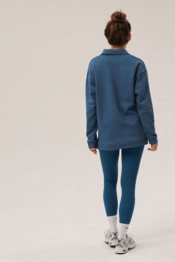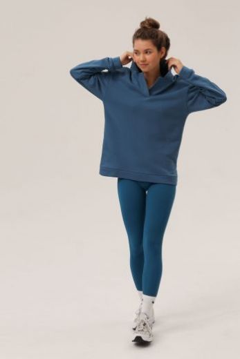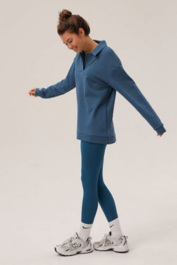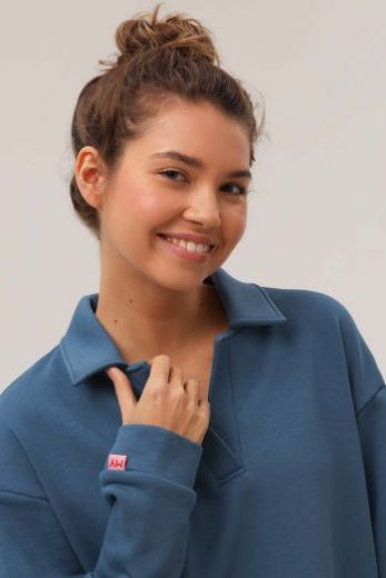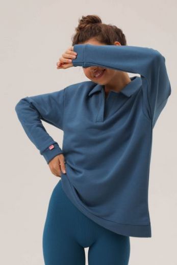 Женский свитшот поло с воротником свободного силуэта из премиального футера. Обьемный крой, удлиненный рукав, спущенное плечо и теплый материал подарят ощущение комфорта и уюта.