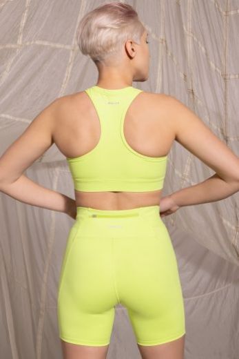 Женские шорты-велосипедки модного люминисцентного цвета. Плоские швы, ластовица, широкий пояс с кулиской. Сзади кокетка с маленьким кармашком на молнии. Трендовая модель. Интересный сэт с топом BF-30 такой же расцветки.