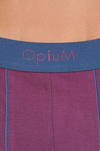 Классическая модель мужских боксеров вишневого цвета с синей отстрочкой и мягкой резинкой с логотипом Opium.