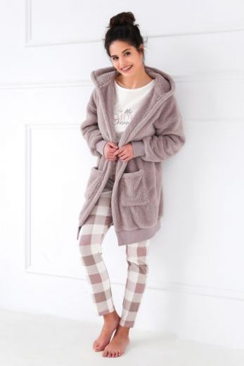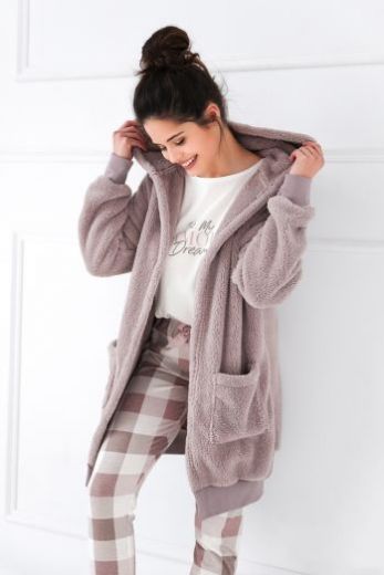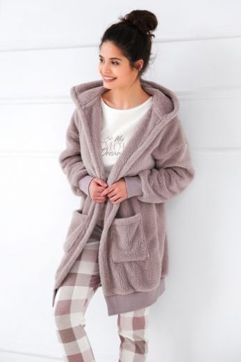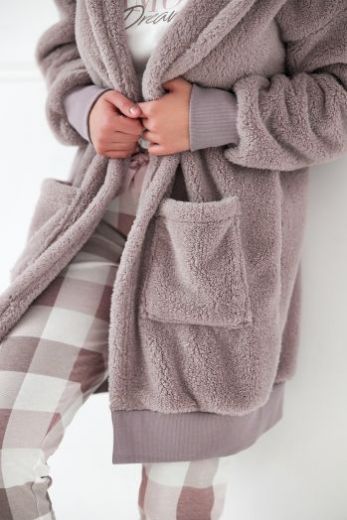 Пушистый блейзер Coffee с капюшоном и карманами. Длина - максимальная. На рукавах резинки в тон изделия.