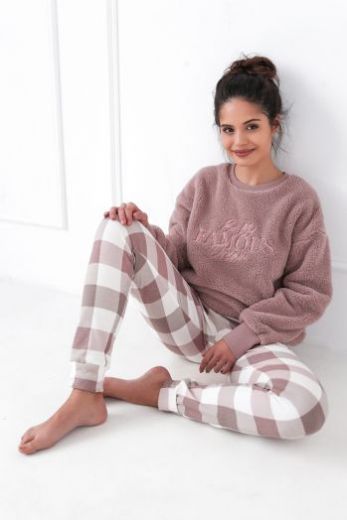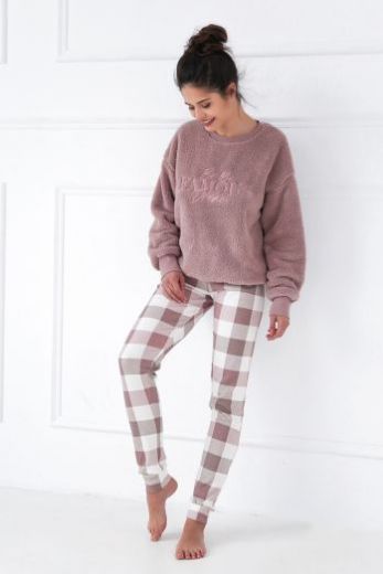 Теплая пижама Kaycee состоит из толстовки с надписью и зауженных брюк в крупную клетку. На рукавах манжеты. Отличный вариант для домашнего отдыха. Брюки: 100% хлопок.