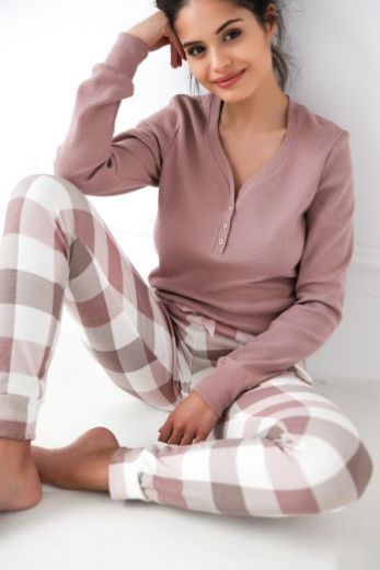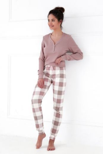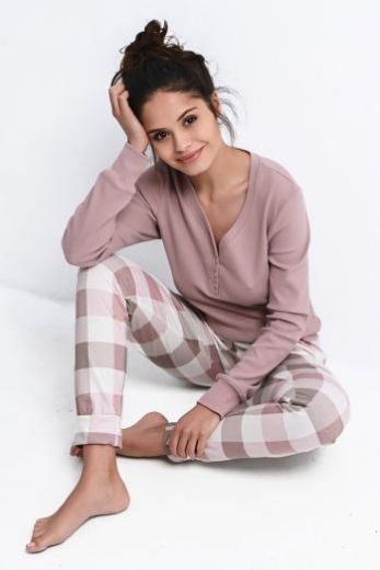 Хлопковая пижама Sammie состоит из однотонного логслива и зауженных к низу брюк. На брюках и рукавах есть манжеты. Идеальный вариант для отдыха дома. Брюки: 100% хлопок