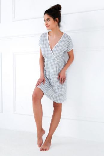 Сорочка Octavia в клетку с короткими рукавами и кантом на поясе, горловине и рукавах. Элемент декора - бантик на поясе. Идеальный вариант не только для сна, но и для домашнего отдыха.