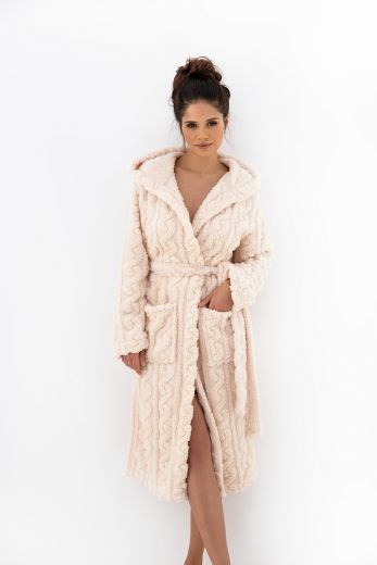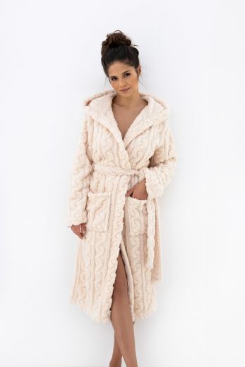 Невероятно мягкий женский халат Ariana с длинными рукавами, большими карманами и текстурным материалом. Талию подчеркивает пояс. Халат можно использовать сразу после купания, отлично впитывает воду.