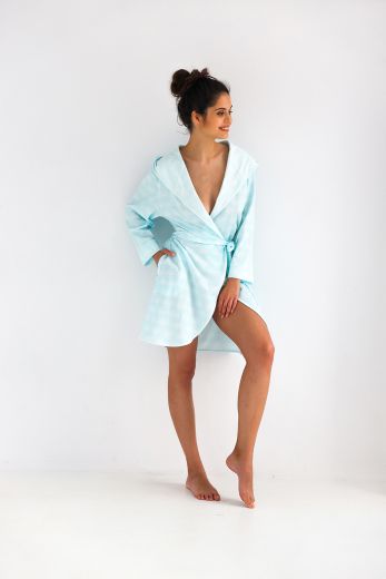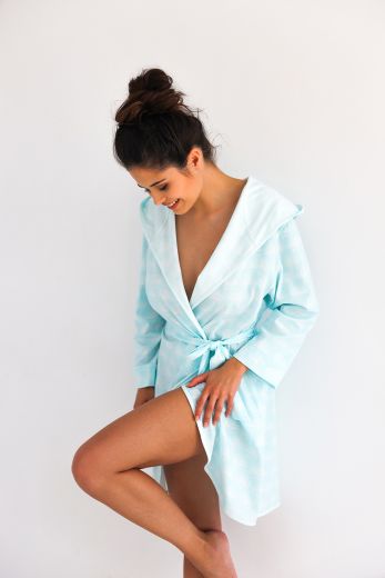 Оригинальный халат Greta с капюшоном и длинными рукавами. Выполнен из хлопкового полотна с градиентным принтом. Идеально подойдет для сна или отдыха в домашней обстановке.