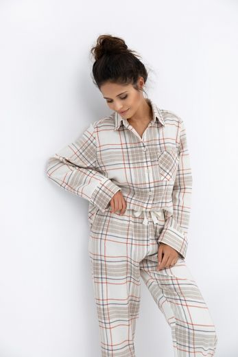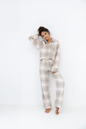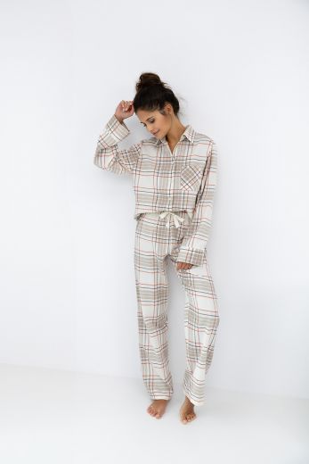 Домашний комплект Adalyn состоит из прямых брюк в клетку и рубашки на пуговицах. Брюки на широкой резинке, декорированы бантиком на поясе. Идеальный вариант не только для сна, но и для домашнего отдыха.