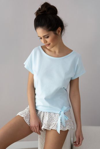 Пижама женская SENSIS Areta, футболка, шорты, хлопок, бирюзовый