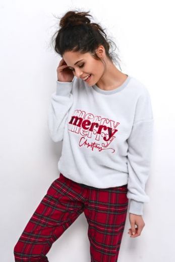 Уютная пижама Gween состоит из толстовки с манжетами-резинками и ярких фланелевых брюк прямого кроя в клетку. На груди контрастная надпись. Брюки: 64% хлопок, 35% полиэстер, 1% люрекс.