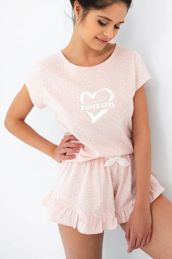 Пижама женская SENSIS Super Girl, футболка, шорты, розовый