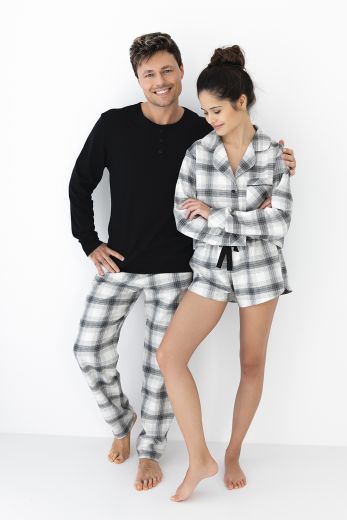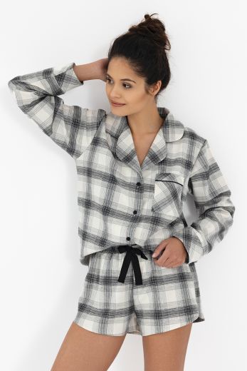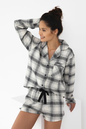 Пижама Veronica состоит из рубашки и шорт в крупную клепку. Шорты свободного кроя, на широкой резинке. Идеальный вариант не только для сна, но и для домашнего отдыха.