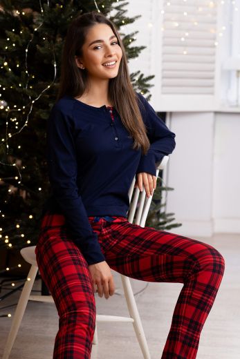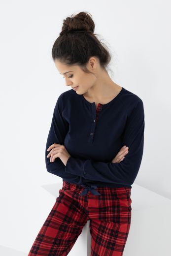 Пижама женская SENSIS Yvette, лонгслив и брюки, темно-синий